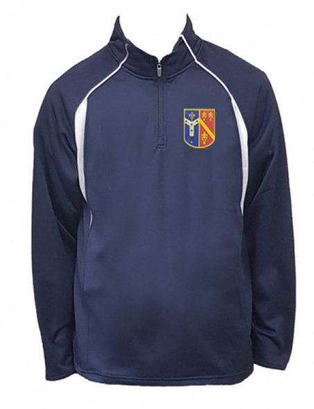 Item: Navy 1/4 ZipTrack Top with white contrast panels and Archbishop Tenison's logo