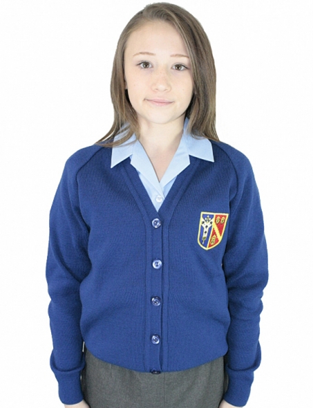 Windsor Blue Classic Cardigan with Archbishop Tenison’s Logo