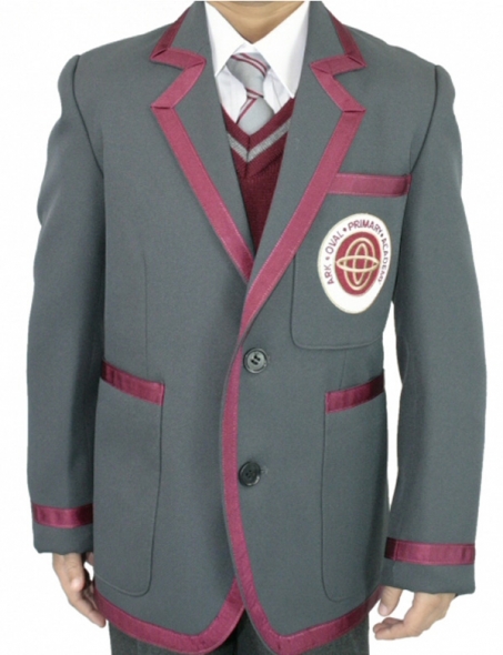 Item: Grey Unisex blazer with maroon trim and ARK Oval badge