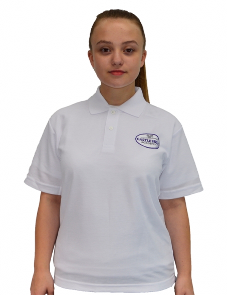 Item: White Polo Shirt with Castle Hill Academy Logo