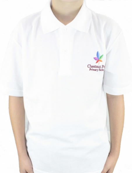 Item: White Unisex Polo Shirt with Chestnut Park logo
