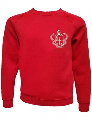 Item: Red Crew Neck Sweatshirt with Christ Church Purley logo