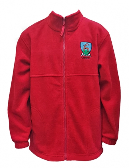 Item: Red full zip fleece jacket with Cypress Primary new logo