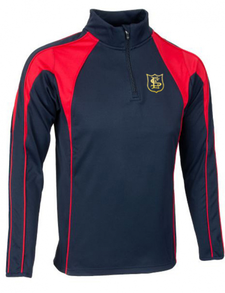 Item: Navy and Red 1/4 Zip track top with printed Elmhurst School logo