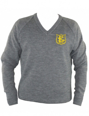 Item: Grey Courtelle Pullover with embroidered Elmhurst School logo