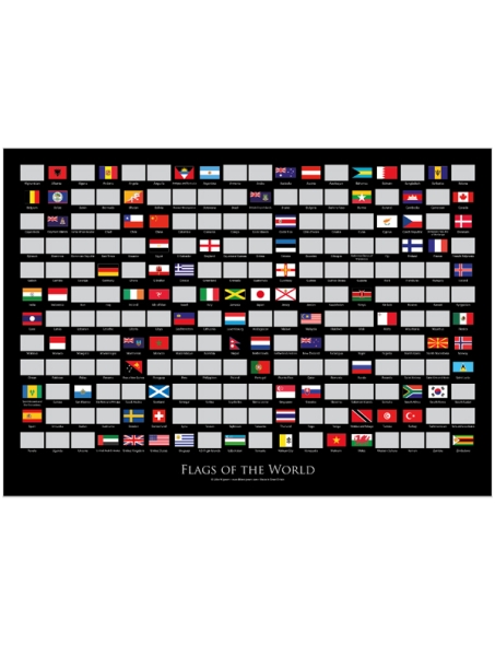 Keep track of all your travels from Australia to Zimbabwe, our colourful scratch poster looks great framed and is a perfect memory of your favourite trips. Having 216 separate flags for each country makes our poster far more colourful and interesting than scratch maps, no more staring at vast oceans of emptiness and miniscule dots for small countries, each country has the same size flag! Also makes a fun educational resource for learning flags, scratch them off as you learn them!