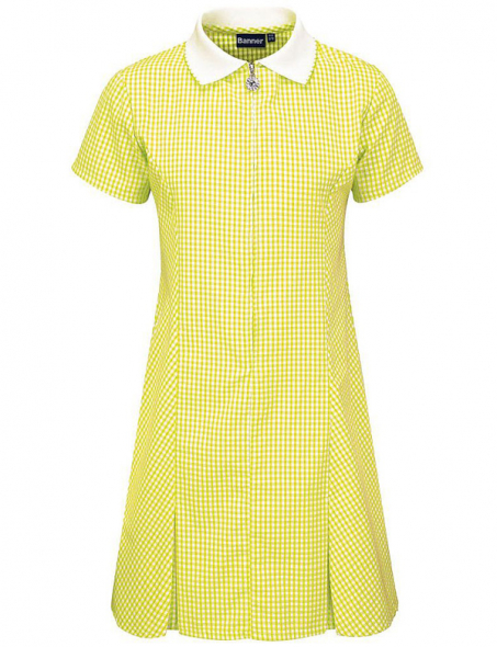Item: Yellow Gingham Check Summer Dress with white collar and front zip