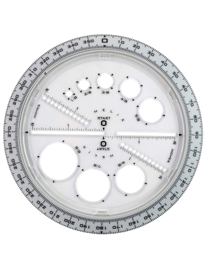 • Compass, protractor and circle template all in one!