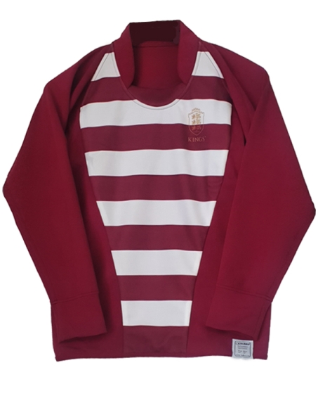 Maroon and White hooped reversible jersey with printed King's logo on one side and embroidered text on reverse