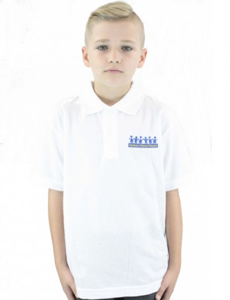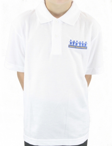 Item: White Button-Down collar Polo Shirt with embroidered Norbury Manor logo