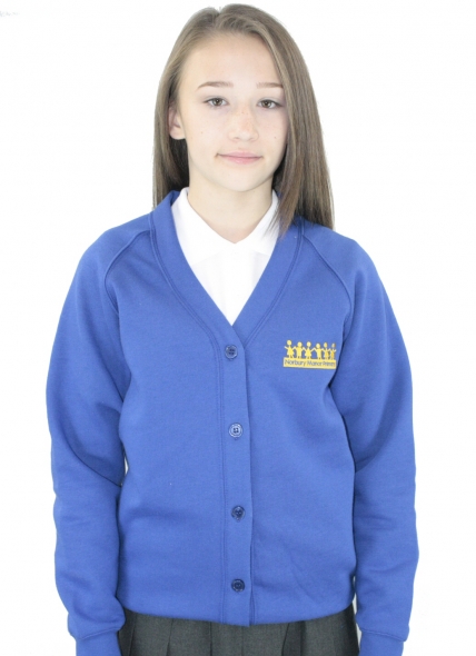 Item: Royal Blue button-down sweatcardy with Norbury Manor logo