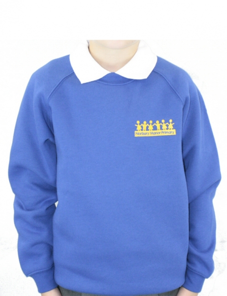 Item: Royal Blue Crew Neck Sweatshirt with Norbury Manor logo