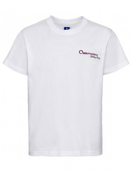 Item: White classic style t-shirt with Oasis Academy Shirley Park logo