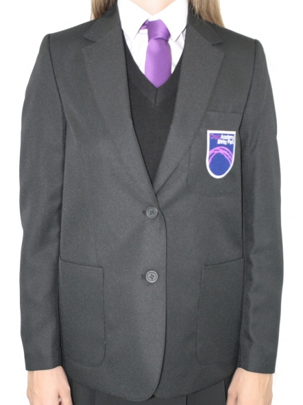 Item: Black Eco-Premiere Girls Blazer with Oasis Secondary Shirley Park logo in a sturdy fit