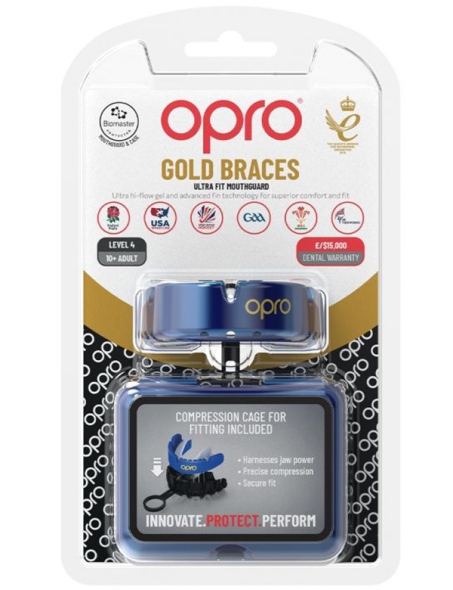 The OPRO Gold Level Braces Mouthguard is specially made for wearers of fixed braces and suitable for ages 7 . Each mouthguard also comes with anti-microbial additive in the mouthguard itself and the case too. This protects against the build-up of up to 99.99% of bacteria growth. The fitting process makes this gum shield second to none when it comes to protection for those who wear fixed braces. The mouthguard itself also has anti-microbial protection as standard in all Gold levels.