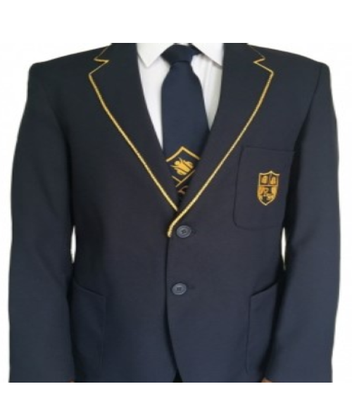 Item: Navy blazer with gold cording trim and Rutherford House logo