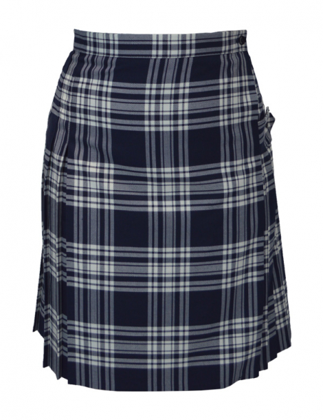 Item: Navy/White wrap around senior kilt with side tab fastening.