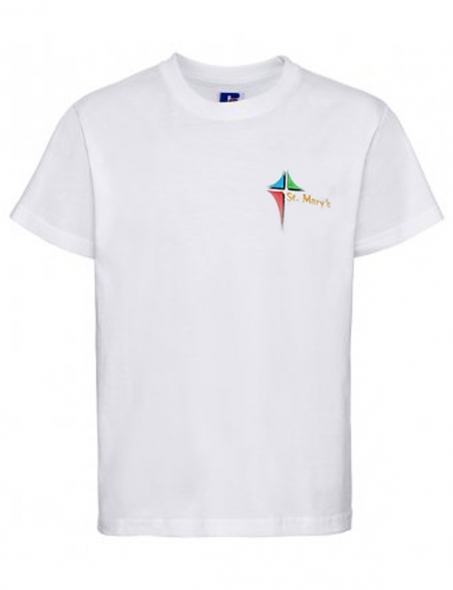 Item: White classic style t-shirt with St. Mary’s Infants logo