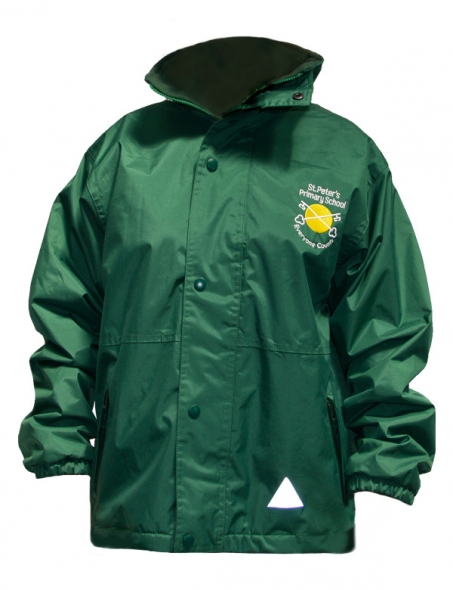 Item: Bottle Green reversible fleece lined jacket with embroidered St. Peter's Primary logo