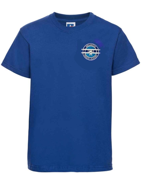 Item: Royal Blue classic style t-shirt with Wallington Primary Academy logo