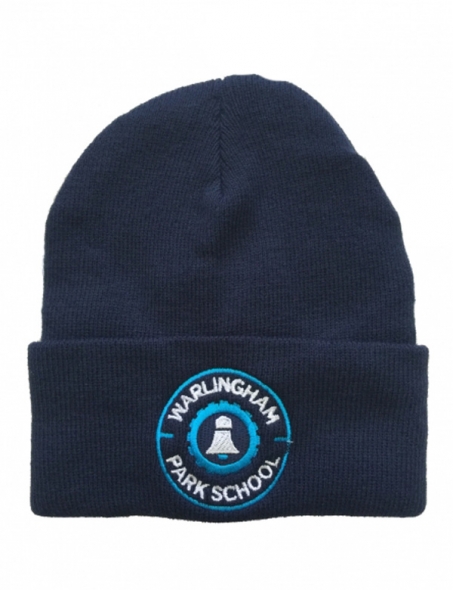 Item: Navy ski hat with turned up edges and embroidered Warlingham Park Logo