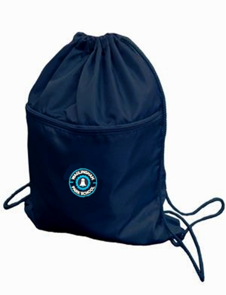 Item: Navy drawstring swimbag with embroidered Warlingham Park logo