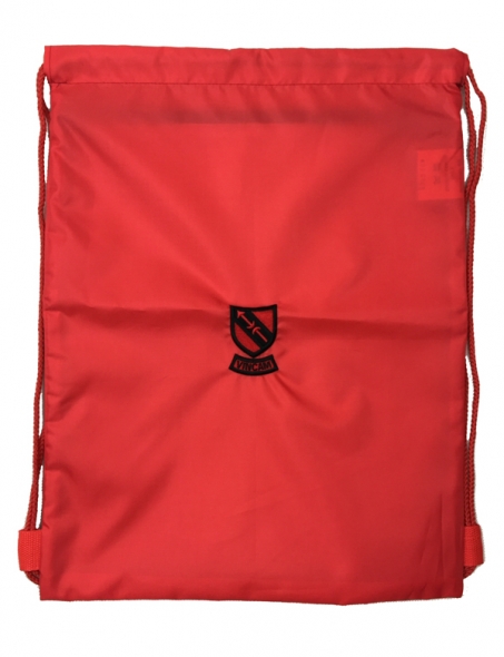 Item: Red drawstring swimbag with Winterbourne Junior Girls logo