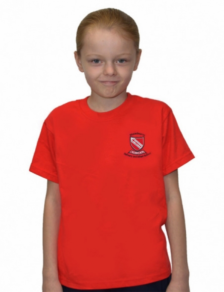 Item: Red classic style t-shirt with Winterbourne Nursery & Infants logo