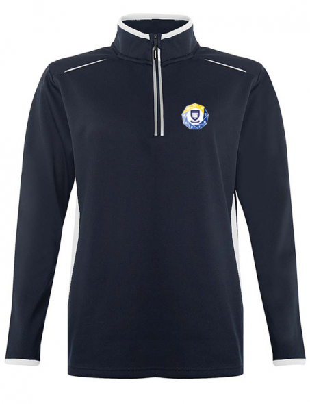 Item: Navy/White Aptus Essentials Quarter Zip Track Top with contrast colour panels and binding and Woodcote High logo
