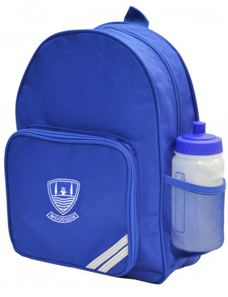 Item: Royal Blue infant backpack with embroidered Woodside Academy logo