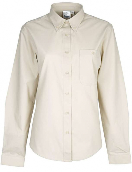 The Adult / Network Scouts long sleeve offical blouse is a lightweight key element of uniform and has a single breast pocket, a pleated back and button down collar. This item can be worn by all members of the Adult / Network Scouts sections.