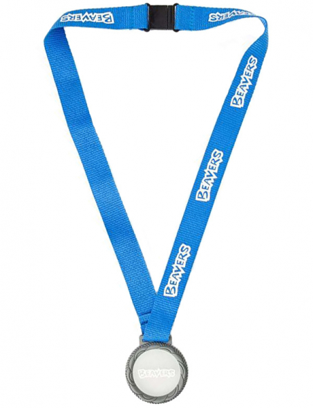 This bright blue lanyard medal features the Beavers logo down the lanyard and the PVC medal has the Beavers logo in the centre.