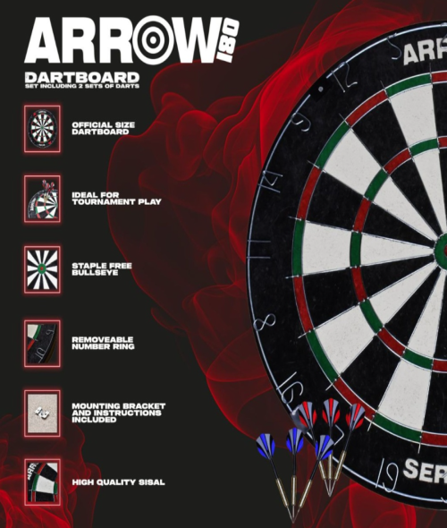 This set includes a durable bristle dartboard and 2 FREE sets of 18g steel darts, providing hours of fun for friends and family.