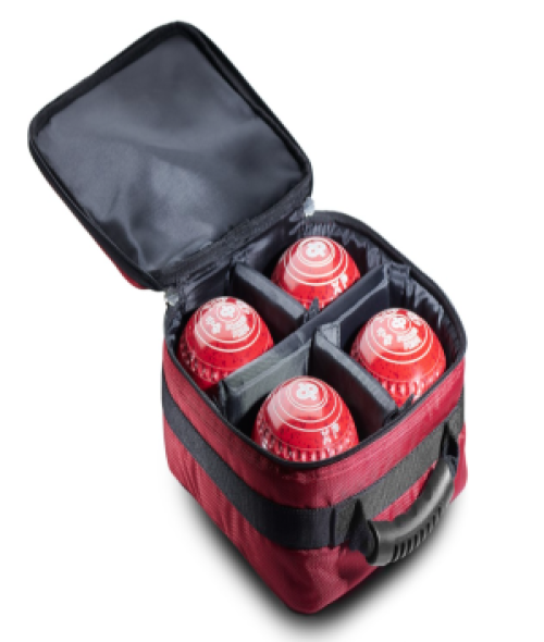 A modern style padded bag to hold four lawn bowls, up to size 4.