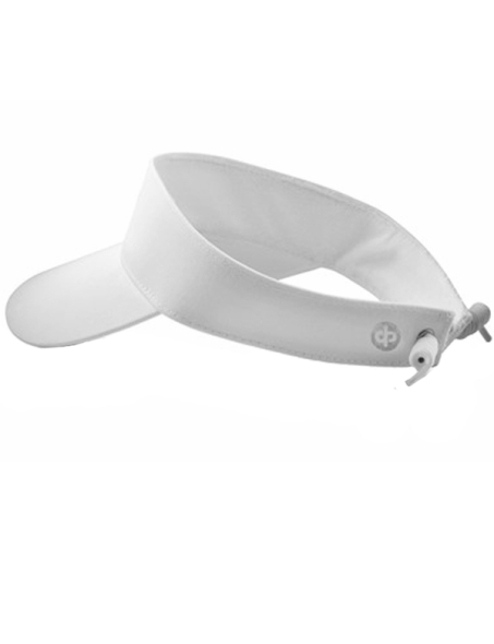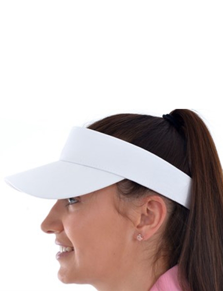 • Ladies white visor with elasticated corkscrew style adjustment strap on the back