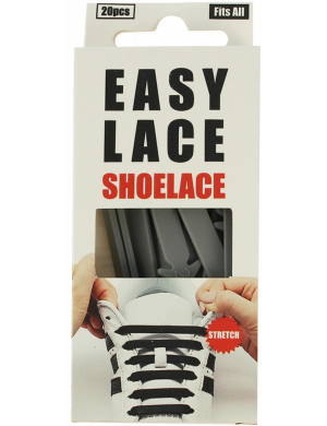 Easy Lace pack of 20 silicone flat laces in 10 sizes to fit any shoe, supplied loose in a box.