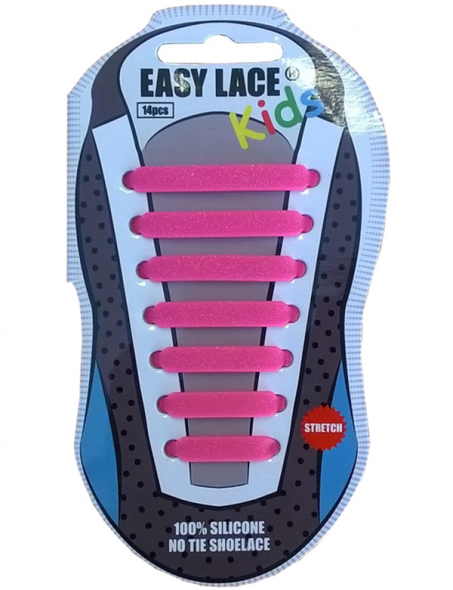 Easy Lace® Kids Flat Silicone Shoelaces 14pc - Pink Glitter
