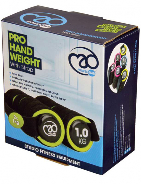Fitness-Mad's Pro Hand Weight's with straps are made from steel handle with non-slip NBR foam covering for a soft and comfortable grip, complete with elasticated strap for added safety.