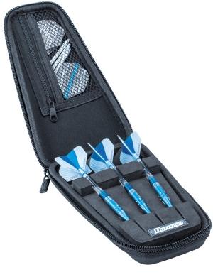 Slim ergonomic hard case, providing protection for fully assembled steeltip and softip darts fitted with either traditional or winged flights.