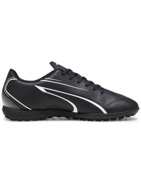 Boss the game with these men's Vitoria TT football boots from PUMA. In a Black and White colourway, these boots are cut from smooth synthetic in the upper for a lasting wear. They feature a lace fastening to lock you in, with a padded collar for added support. Underfoot, they sit on a lugged rubber outsole for traction and acceleration on artificial turf and are finished up with a Formstrip and PUMA branding throughout.