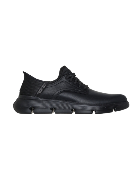 Master your efficiency with a comfortable business casual look wearing Skechers Hands Free Slip-ins®: Garza - Gervin. This TOUCHLESS FIT® Oxford style features a smooth leather upper with stretch laces, a Skechers Slip-ins® molded heel panel, a charcoal-infused Skechers Air-Cooled Memory Foam® insole, and a Skechers Goga Mat Arch™ for added support.