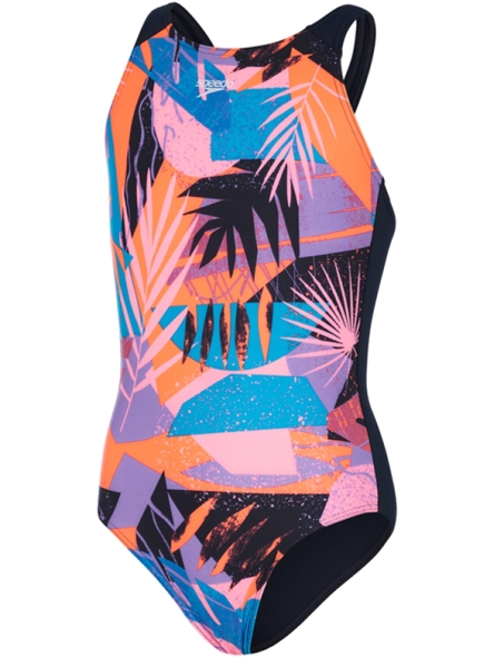 Escape to a tropical paradise wearing our vivid Pulseback swimsuit, featuring a colourful abstract print inspired by exotic foliage. A great choice for training and lessons, the Pulseback style offers a higher neck and a sporty back that's ideal for junior swimmers and is front lined for comfort and modesty. The ECOEndurance 10 fabric offers superb colour performance, so you can enjoy the vibrant print for longer. Offering higher chlorine resistance than standard swimwear fabrics, it fits like new for longer with CREORA® HighClo™ and is made from 100% recycled materials.
