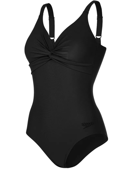 One-piece with padded bust support and U back design.This classic twist front swimsuit makes the most of your figure with removable padded bust support for modesty, adjustable shoulder straps for the perfect fit and the concealed tummy panel within the swimsuit subtly flatters. Designed to fit for longer thanks to Speedo's Endurance®10 fabric providing comfort and confidence in the water.