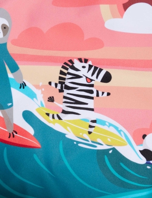 Surf’s up, and Bondi’s where it’s at! Featuring a fun surf scene print with a surfing sloth, zebra and panda, this infant swimsuit is ideal for fun times in the pool and on the beach. Comfortable in and out of the water, the racerback design means your little one's straps don’t slip around when they're splashing about. Soft and stretchy, our Endurance10 fabric ensures kids can swim in comfort, whilst CREORA HighClo™ means their suit will fit them like new for longer.