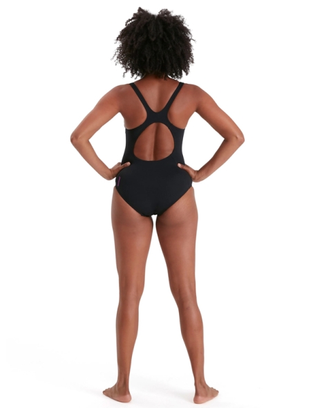 • Speedo Placement Muscleback Swimsuit - Black/Pink