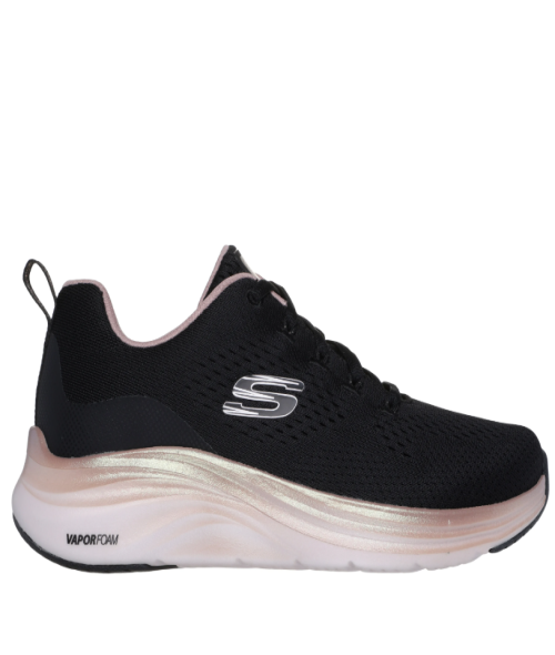 Take a shine to lightweight comfort and sleek style wearing Skechers Vapor Foam™ - Midnight Glimmer. This vegan lace-up features an engineered mesh upper with a Skechers Air-Cooled Memory Foam® insole, metallic trim, plus ultra-lightweight Vapor Foam™ cushioning.