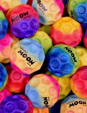 Meet the most colourful Moon Balls to hit the earth! The hyper bouncy gradient Moon Balls show off their true colours with this new vibrant ombre assortment - also featuring white star splatter instead of black dots.