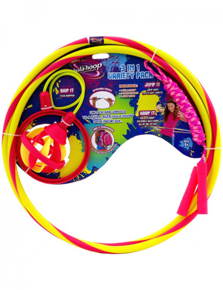 Hoop It!, Skip It! Or Jump It! with this 3-in-1 variety pack Hula Hoop® from Wham-O, made from high impact plastic featured in a bright colourway. The hula hoop® can be unlocked & unfolded to a full size 34” Hula Hoop® and perfect for keeping the little ones busy for hours.