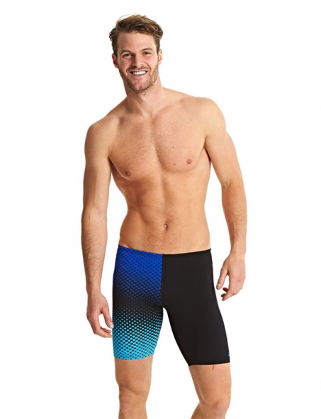 Zoggs Bridge Jammer is a must-have for everyday training. Designed to cut off just above the knee, this jammer features a bold blue circle print down one leg. The v front lining offers added comfort and modesty.