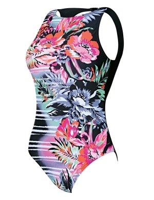 Our Latino Love Hi Front Swimsuit is an absolute must-have for any swim wardrobe. This swimsuit features a high neckline and medium leg - perfect for a little added coverage. A shelf bra is built in for light support, so you can have it all in this stunning floral swimsuit. The open back allows for enhanced freedom of movement in the water, while the back clip makes it even easier to get into this vibrant swimming costume.